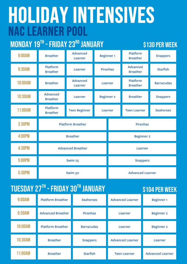 swim school HOLIDAY INTENSIVES